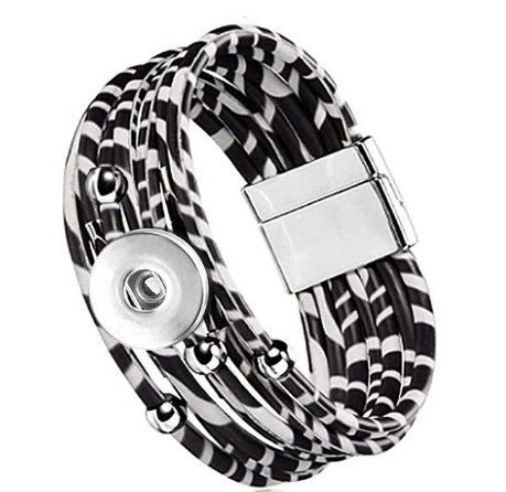 Black-White Zebra Stripe Magnetic 20mm Snap Bracelet