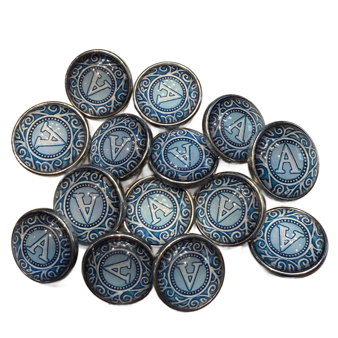 Blue Filigree Alphabet Letter 20mm Snap Charm for Snap Charm Jewelry