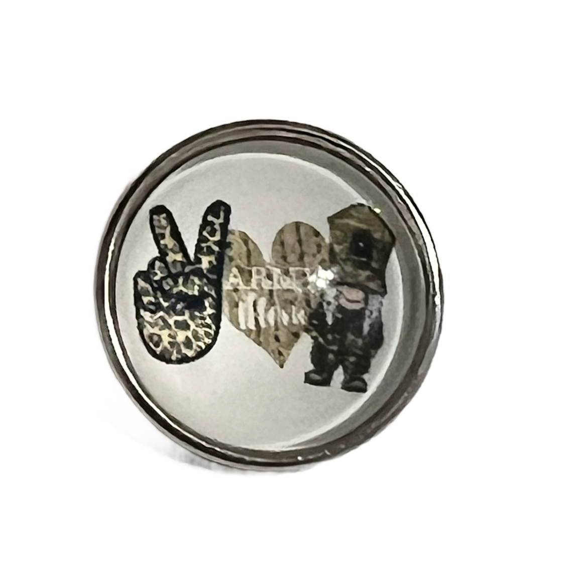Peace Love Army Gnome 20mm Glass Snap Charm for Snap Jewelry
