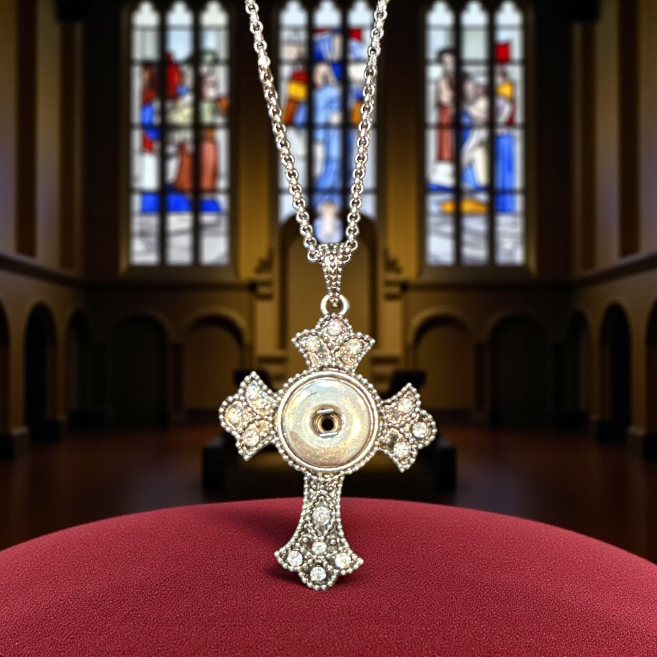 Classic Silver Rhinestone 20mm Snap Charm Base Snap Necklace with Chain Included for Snap Jewelry