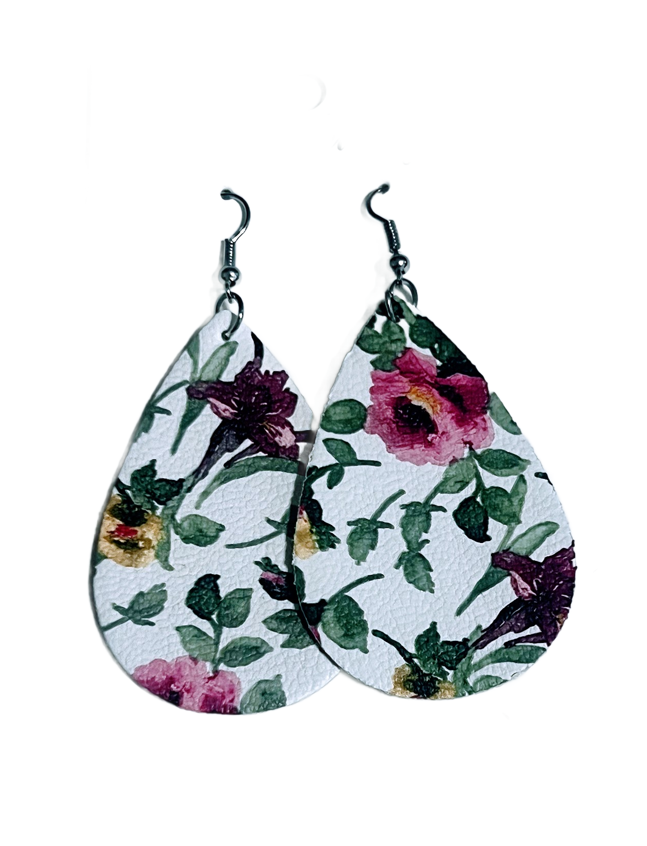 Double Sided Dangle Floral White/Pink Fishhook Earrings