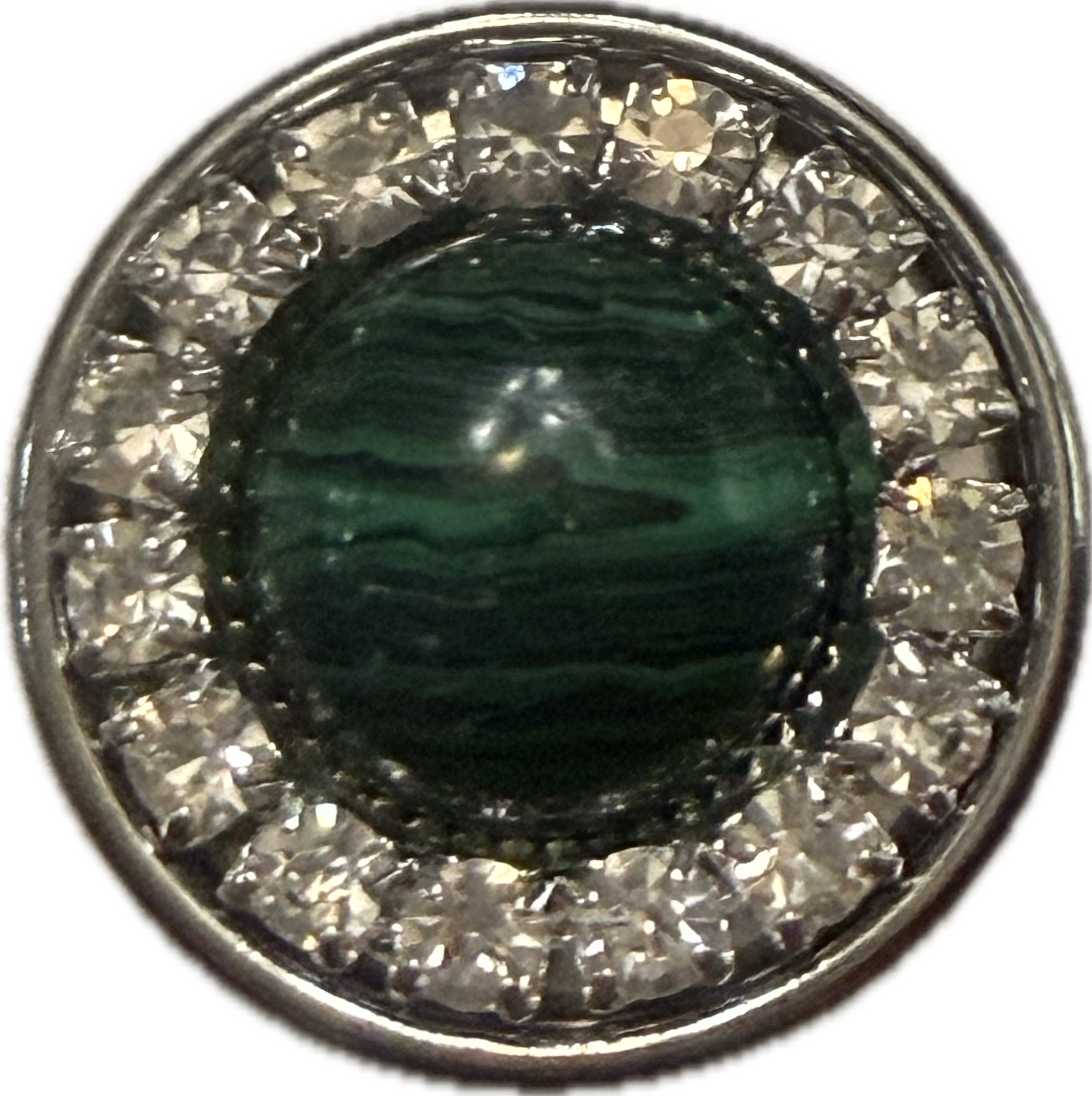 Make a statement with our Green Marbled Stone with Clear Rhinestone 18mm for Snap Charm Jewelry. The deep green marbled stone paired with a sparkling clear rhinestone will add a touch of elegance to any snap charm bracelet or necklace. Precisely crafted to fit perfectly, this stone will elevate your jewelry collection to the next level.