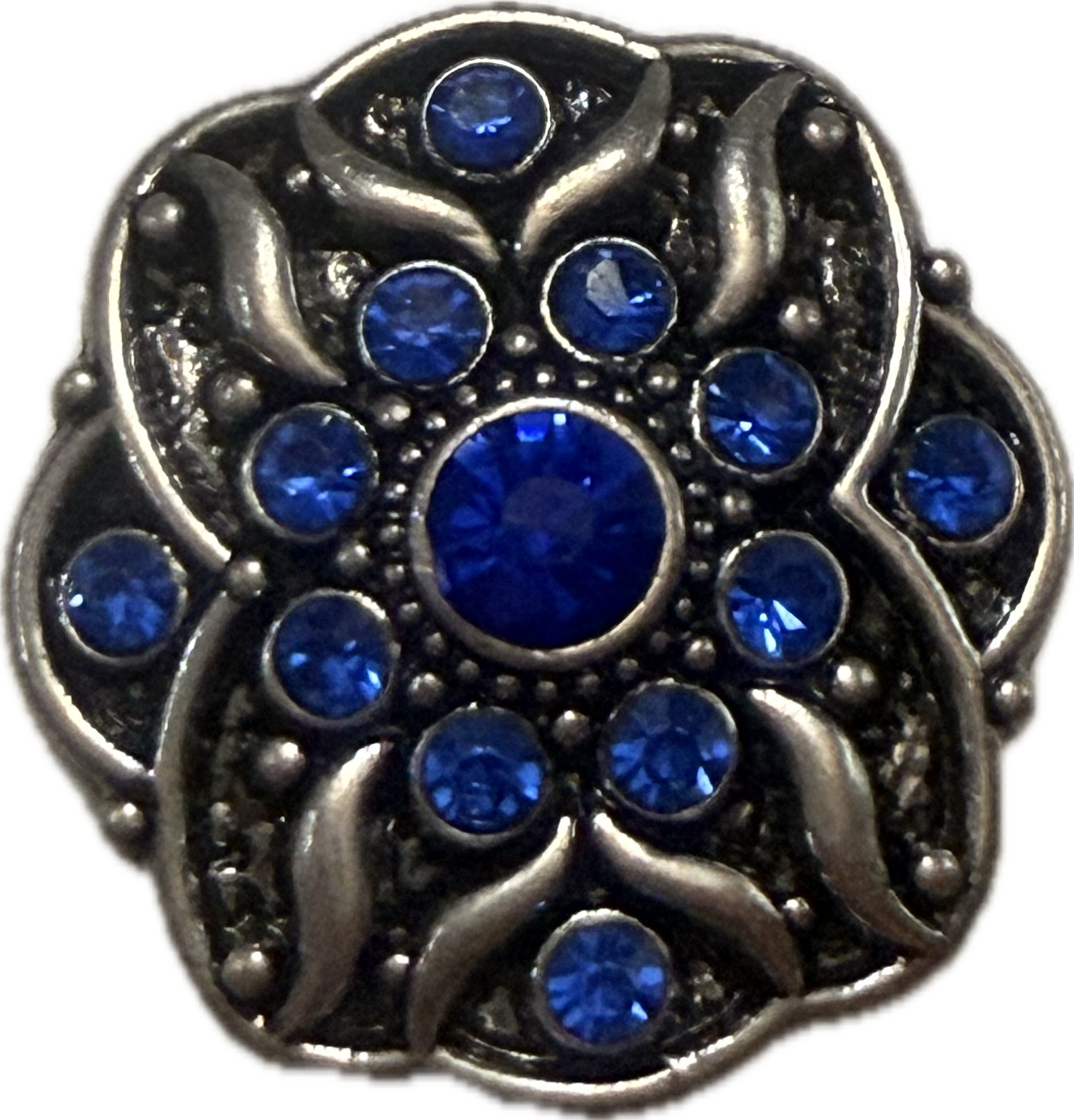 Introducing the Metal Rhinestone Blue Snap, the perfect addition to your Snap Charm Jewelry collection. With its 20mm size and sparkling rhinestones, this snap adds a touch of elegance to any outfit. Upgrade your accessories today!