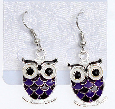Enhance your wardrobe with these stunning Purple Enamel Owl Dangle Fishhook Earrings. The intricate owl design features vibrant purple enamel, perfect for adding a pop of color to any outfit. The fishhook style allows for easy wear and the lightweight construction ensures comfortable all-day wear. Elevate your style with these beautiful earrings.