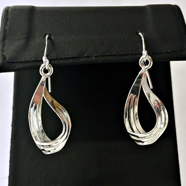 Silverplated Triple Wire Dangle Fishhook Earrings