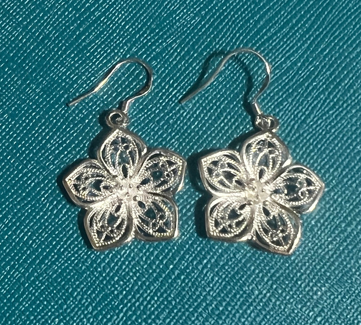Silverplated Flower Open Cut-Out Dangle Fishhook Earrings