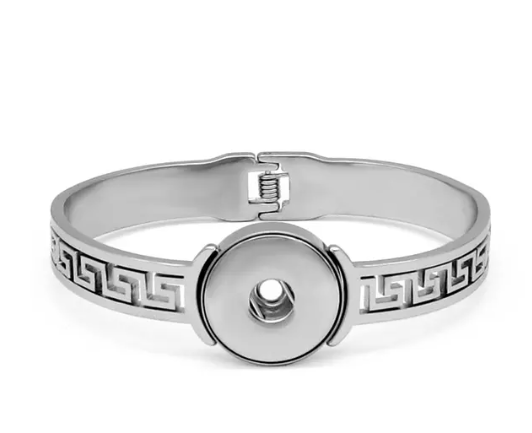 Stainless Steel Greek Key Spring Clasp Design Bangle Single Snap 20mm Bracelet