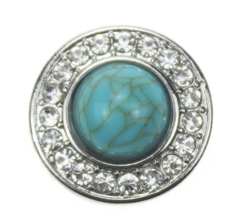 Turquoise and Rhinestone 20mm Snap Charm for Snap Jewelry