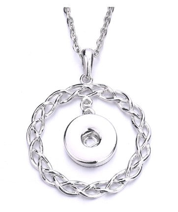 Woven Outside Circle with Center Circle Dangle Snap Charm Necklace 20mm